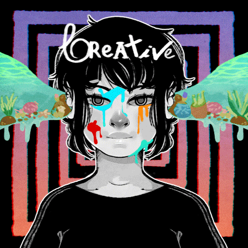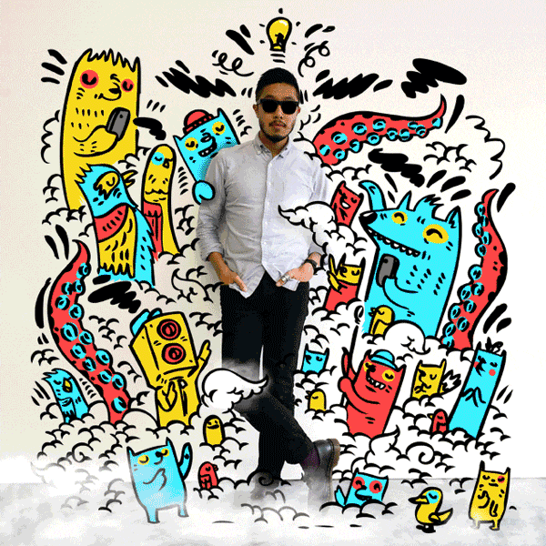 Look at the most creative gif of man surrounded by colorful doodles dipicting the true senses of art.